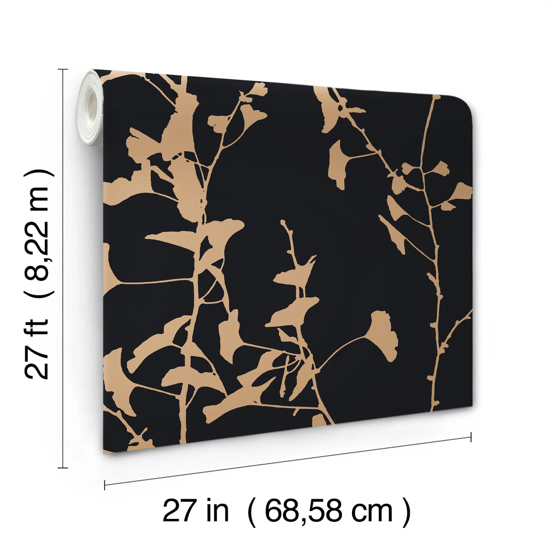 Ronald Redding VR1512 Ginkgo Silhouette Black & Gold Cork Wallpaper