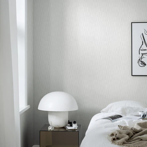 Quadrilaterals in pearl is a graphic geometric wallpaper that lends sophisticated elegance to interiors. The minimalist and modern pattern was created by Scandinavian heritage brand Boråstapeter. This product is FSC Certified. Available in North America exclusively through Schumacher.
